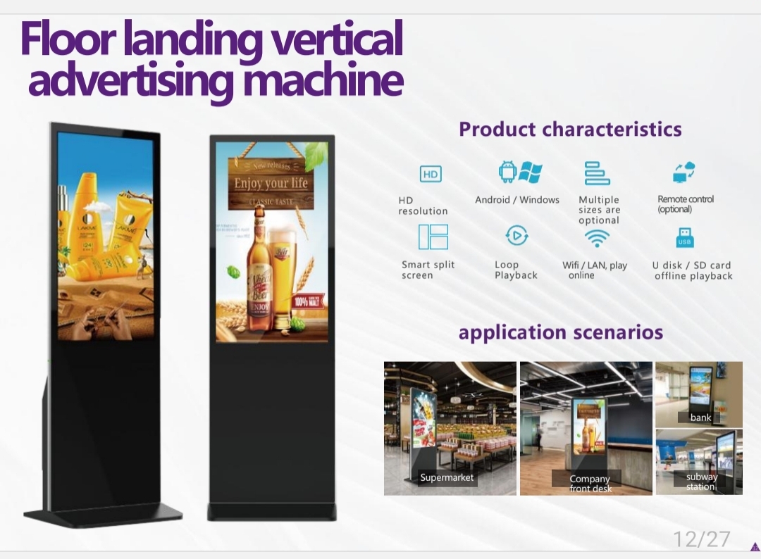 در دنیای پرهیاهوی امروز، جلب توجه مشتریان و متقاعد کردن آنها به خرید محصولات یا استفاده از خدمات، چالشی بزرگ برای کسبوکارهاست. استندهای دیجیتال تبلیغاتی، با پویایی و جذابیت بصری خود، به شما این امکان را میدهند تا به شکلی موثرتر از روشهای سنتی، با مشتریان بالقوهی خود ارتباط برقرار کنید و آنها را به سمت برند خود جذب نمایید. ابن استند دارای 2 عدد پورت UDB و 1 عدد پورت HDMI می باشد . قابلیت اتصال به فلش دیسک و لب تاب را دارد.